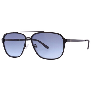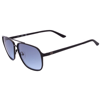 Guess Factory Sunglasses. Series number: GF0184. Color code: 02W. Shape: Navigator. Lens Width: 60 mm. Lens Bridge: 13 mm. Arm Length: 140 mm. 100% UV protection. Non-Polarized. Frame Material: Metal. Frame Color: Matte Black. Lenses Type: Blue Gradient. Rim Style: Full-Rim. UPC/EAN code: 664689991785. Guess Factory Blue Gradient Navigator Men's Sunglasses GF0184 02W 60.