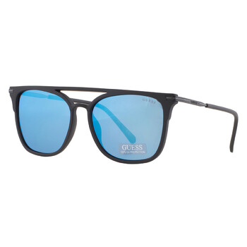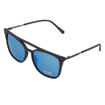 Guess Factory Sunglasses. Series number: GF5077. Color code: 02X. Shape: Browline. Lens Width: 59 mm. Lens Bridge: 17 mm. Arm Length: 140 mm. 100% UV protection. Non-Polarized. Frame Material: Plastic. Frame Color: Matte Black. Lenses Type: Blue Mirror. Rim Style: Full-Rim. UPC/EAN code: 889214286741. Guess Factory Blue Mirror Browline Men's Sunglasses GF5077 02X 59.