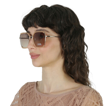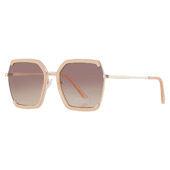 Guess Factory Sunglasses. Series number: GF0418. Color code: 57F. Shape: Butterfly. Lens Width: 58 mm. 100% UV protection. Non-Polarized. Frame Material: Metal. Frame Color: Shiny Beige. Lenses Type: Brown Gradient. Rim Style: Semi-Rimless. UPC/EAN code: 889214431882. Guess Factory Brown Gradient Butterfly Ladies Sunglasses GF0418 57F 58.