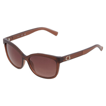Guess Factory Sunglasses. Series number: GF0300. Color code: 45F. Shape: Cat Eye. Lens Width: 57 mm. Lens Bridge: 16 mm. Arm Length: 140 mm. 100% UV protection. Non-Polarized. Frame Material: Plastic. Frame Color: Shiny Light Brown. Lenses Type: Brown Gradient. Rim Style: Full-Rim. UPC/EAN code: 664689877997. Guess Factory Brown Gradient Cat Eye Ladies Sunglasses GF0300 45F 57.