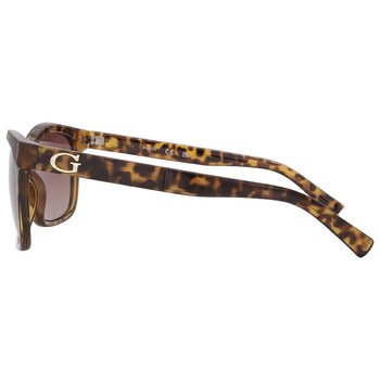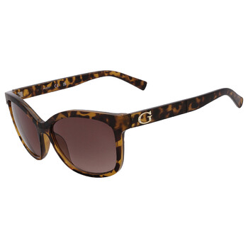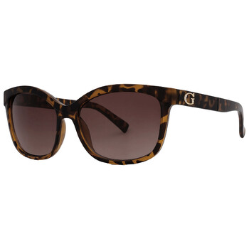 Guess Factory Sunglasses. Series number: GF0300. Color code: 52F. Shape: Cat Eye. Lens Width: 57 mm. Lens Bridge: 16 mm. Arm Length: 140 mm. 100% UV protection. Non-Polarized. Frame Material: Plastic. Frame Color: Dark Havana. Lenses Type: Brown Gradient. Rim Style: Full-Rim. UPC/EAN code: 664689878000. Guess Factory Brown Gradient Cat Eye Ladies Sunglasses GF0300 52F 57.