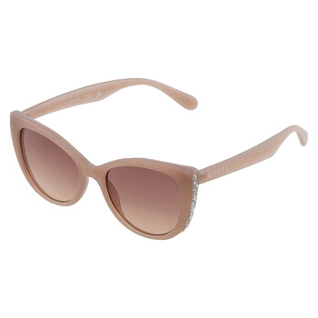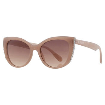 Guess Factory Sunglasses. Series number: GF0422. Color code: 57F. Shape: Cat Eye. Lens Width: 53 mm. 100% UV protection. Non-Polarized. Frame Material: Plastic. Frame Color: Shiny Beige. Lenses Type: Brown Gradient. Rim Style: Full-Rim. UPC/EAN code: 889214446886. Guess Factory Brown Gradient Cat Eye Ladies Sunglasses GF0422 57F 53.