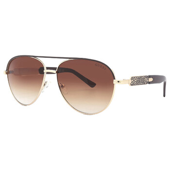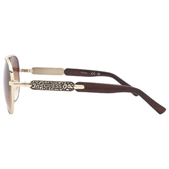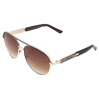 Guess Factory Sunglasses. Series number: GF0287. Color code: 32F. Shape: Pilot. Lens Width: 57 mm. Lens Bridge: 14 mm. Arm Length: 135 mm. 100% UV protection. Non-Polarized. Frame Material: Metal. Frame Color: Gold. Lenses Type: Brown Gradient. Rim Style: Full-Rim. UPC/EAN code: 664689804726. Guess Factory Brown Gradient Pilot Ladies Sunglasses GF0287 32F 57.