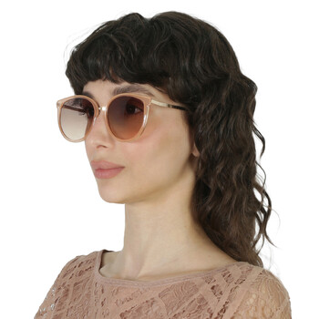 Guess Factory Sunglasses. Series number: GF0428. Color code: 57F. Shape: Teacup. Lens Width: 56 mm. 100% UV protection. Non-Polarized. Frame Material: Plastic. Frame Color: Shiny Beige. Lenses Type: Brown Gradient. Rim Style: Full-Rim. UPC/EAN code: 889214432087. Guess Factory Brown Gradient Teacup Ladies Sunglasses GF0428 57F 56.