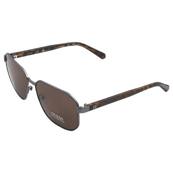 Guess Factory Sunglasses. Series number: GF5086. Color code: 09E. Shape: Oversized. Lens Width: 59 mm. Lens Bridge: 15 mm. Arm Length: 145 mm. Frame Material: Metal. Frame Color: Matte Gunmetal. Lenses Type: Brown. Rim Style: Full-Rim. UPC/EAN code: 889214316585. Guess Factory Brown Oversized Men's Sunglasses GF5086 09E 59.