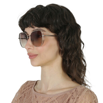 Guess Factory Sunglasses. Series number: GF0416. Color code: 32F. Shape: Browline. Lens Width: 60 mm. Lens Bridge: 16 mm. Arm Length: 145 mm. 100% UV protection. Non-Polarized. Frame Material: Metal. Frame Color: Gold. Lenses Type: Gradient Brown. Rim Style: Full-Rim. UPC/EAN code: 889214431851. Guess Factory Gradient Brown Browline Ladies Sunglasses GF0416 32F 60.