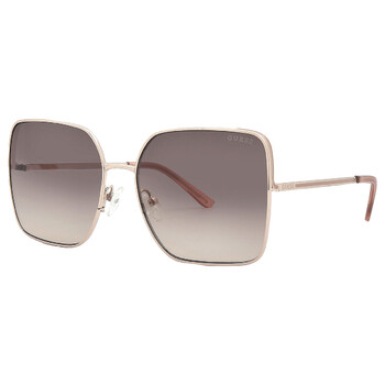 Guess Factory Sunglasses. Series number: GF6182. Color code: 28F. Shape: Square. Lens Width: 58 mm. 100% UV protection. Non-Polarized. Frame Material: Metal. Frame Color: Shiny Rose Gold. Lenses Type: Gradient Brown. Rim Style: Full-Rim. UPC/EAN code: 889214447210. Guess Factory Gradient Brown Square Ladies Sunglasses GF6182 28F 58.