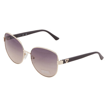 Guess Factory Sunglasses. Series number: GF6172. Color code: 32B. Shape: Cat Eye. Lens Width: 59 mm. 100% UV protection. Non-Polarized. Frame Material: Metal. Frame Color: Gold. Lenses Type: Gradient Smoke. Rim Style: Full-Rim. UPC/EAN code: 889214429766. Guess Factory Gradient Smoke Cat Eye Ladies Sunglasses GF6172 32B 59.