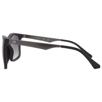 Guess Factory Sunglasses. Series number: GF0171. Color code: 02B. Shape: Square. Lens Width: 57 mm. Lens Bridge: 18 mm. Arm Length: 140 mm. 100% UV protection. Non-Polarized. Frame Material: Plastic. Frame Color: Matte Black. Lenses Type: Gradient Smoke. Rim Style: Full-Rim. UPC/EAN code: 664689891627. Guess Factory Gradient Smoke Square Men's Sunglasses GF0171 02B 57.