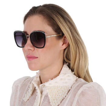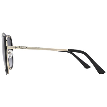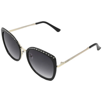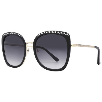 Guess Factory Sunglasses. Series number: GF0381. Color code: 01B. Shape: Butterfly. Lens Width: 56 mm. Lens Bridge: 20 mm. Arm Length: 140 mm. 100% UV protection. Non-Polarized. Frame Material: Metal. Frame Color: Shiny Black. Lenses Type: Smoke Gradient. Rim Style: Full-Rim. UPC/EAN code: 889214238306. Guess Factory Smoke Gradient Butterfly Ladies Sunglasses GF0381 01B 56.