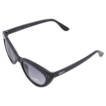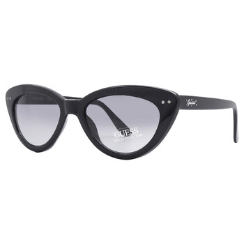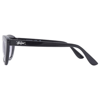 Guess Factory Sunglasses. Series number: GF0402. Color code: 01B. Shape: Cat Eye. Lens Width: 52 mm. Lens Bridge: 18 mm. Arm Length: 145 mm. 100% UV protection. Non-Polarized. Frame Material: Plastic. Frame Color: Shiny Black. Lenses Type: Smoke Gradient. Rim Style: Full-Rim. UPC/EAN code: 889214356246. Guess Factory Smoke Gradient Cat Eye Ladies Sunglasses GF0402 01B 52.