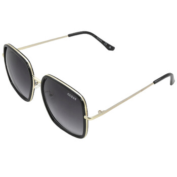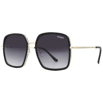 Guess Factory Sunglasses. Series number: GF0389. Color code: 32B. Shape: Square. Lens Width: 57 mm. Lens Bridge: 20 mm. Arm Length: 150 mm. 100% UV protection. Non-Polarized. Frame Material: Metal. Frame Color: Gold. Lenses Type: Smoke Gradient. Rim Style: Full-Rim. UPC/EAN code: 889214284280. Guess Factory Smoke Gradient Square Ladies Sunglasses GF0389 32B 57.