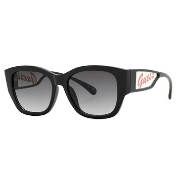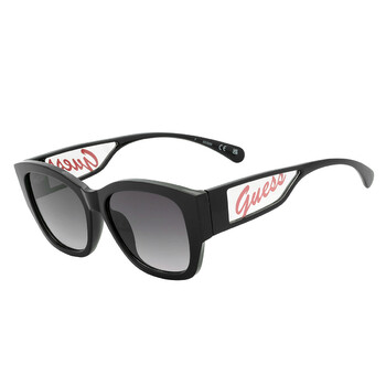 Guess Factory Sunglasses. Series number: GF0403. Color code: 01B. Shape: Square. Lens Width: 56 mm. Lens Bridge: 17 mm. Arm Length: 150 mm. Frame Material: Plastic. Frame Color: Shiny Black. Lenses Type: Smoke Gradient. Rim Style: Full-Rim. UPC/EAN code: 889214356277. Guess Factory Smoke Gradient Square Ladies Sunglasses GF0403 01B 56.