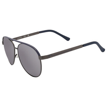 Guess Factory Sunglasses. Series number: GF0172. Color code: 08C. Shape: Pilot. Lens Width: 60 mm. Lens Bridge: 13 mm. Arm Length: 140 mm. 100% UV protection. Non-Polarized. Frame Material: Metal. Frame Color: Shiny Gunmetal. Lenses Type: Smoke Mirror. Rim Style: Full-Rim. UPC/EAN code: 664689891535. Guess Factory Smoke Mirror Pilot Ladies Sunglasses GF0172 08C 60.