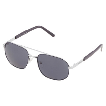 Guess Factory Sunglasses. Series number: GF0250. Color code: 90A. Shape: Navigator. Lens Width: 57 mm. Lens Bridge: 17 mm. Arm Length: 140 mm. 100% UV protection. Non-Polarized. Frame Material: Metal. Frame Color: Shiny Blue. Lenses Type: Smoke. Rim Style: Full-Rim. UPC/EAN code: 889214446732. Guess Factory Smoke Navigator Men's Sunglasses GF0250 90A 57.