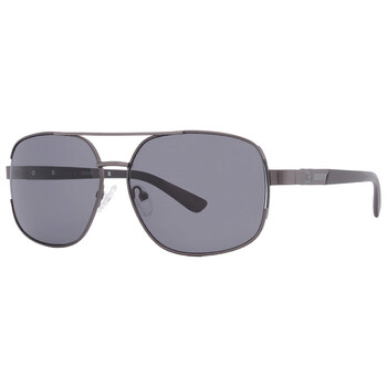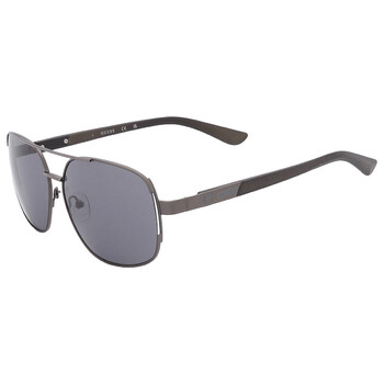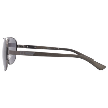 Guess Factory Sunglasses. Series number: GF0227. Color code: 08A. Shape: Rectangular. Lens Width: 59 mm. 100% UV protection. Non-Polarized. Frame Material: Metal. Frame Color: Shiny Gunmetal. Lenses Type: Smoke. Rim Style: Full-Rim. UPC/EAN code: 889214288400. Guess Factory Smoke Rectangular Men's Sunglasses GF0227 08A 59.