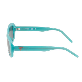 Guess Sunglasses. Series number: GU8250. Color code: 87N. Shape: Rectangular. Lens Width: 54 mm. Lens Bridge: 23 mm. Arm Length: 140 mm. 100% UV protection. Non-Polarized. Frame Material: Plastic. Frame Color: Shiny Turquoise. Lenses Type: Green. Rim Style: Full-Rim. UPC/EAN code: 889214326720. Guess Green Rectangular Ladies Sunglasses GU8250 87N 54.