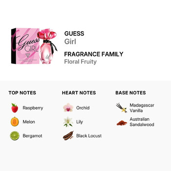 The base notes of rich Madagascar vanilla and warm Australian sandalwood leave a lasting impression, enveloping you in a comforting and luxurious aura. This harmonious blend of ingredients makes the Guess Girl fragrance a delightful accessory to your daily ensemble, whether you're heading to a casual outing or an elegant evening event.