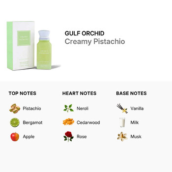 Experience the perfect blend of sweet and sophisticated with Gulf Orchid’s Creamy Pistachio Eau de Parfum Spray. Launched in 2024, this luxurious unisex fragrance captures the essence of modern Middle Eastern elegance. Designed in the United Arab Emirates by the renowned fragrance house Gulf Orchid, Creamy Pistachio is a scent that makes a lasting impression while remaining soft and inviting.