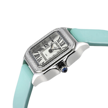 Silver-tone stainless steel case with a blue leather strap. Fixed silver-tone stainless steel bezel. White dial with black hands and Roman numeral hour markers. Minute scale around the inner rim. Dial Type: Analog. Quartz movement. Scratch resistant sapphire crystal. Pull / push crown. Solid case back. Square case shape, case size: 27.5 mm, case thickness: 9 mm. Band width: 16 mm. Buckle clasp. Water resistant at 50 meters / 165 feet. Functions: hour, minute. Additional Info: 12 diamonds. Milan Series. Fashion watch style. GV2 by Gevril Milan Quartz White Dial Ladies Watch 12110-6.