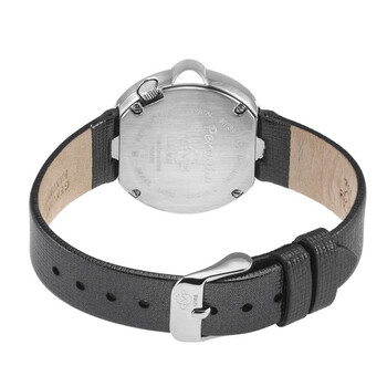 Silver-tone stainless steel case with a grey leather strap. Fixed silver-tone stainless steel bezel. White dial with silver-tone hands and Roman numeral hour markers. Dial Type: Analog. Ronda Caliber 762 quartz movement. Scratch resistant sapphire crystal. Pull / push crown. Solid case back. Round case shape, case size: 33 mm, case thickness: 9 mm. Band width: 16 mm. Buckle clasp. Water resistant at 50 meters / 165 feet. Functions: hour, minute. Perugia Series. Fashion watch style. Watch label: Swiss Movt. GV2 by Gevril Perugia White Dial Ladies Watch 14700.