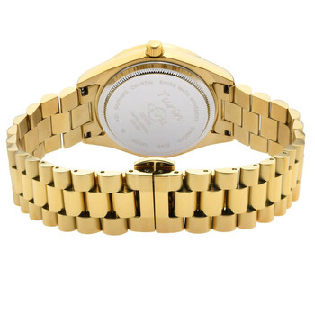Yellow gold-tone stainless steel case and bracelet. Fixed yellow gold-tone stainless steel bezel. Mother of pearl dial with yellow gold-tone hands and diamond hour markers. Dial Type: Analog. Date display at the 3 o'clock position. Ronda Caliber 705 quartz movement. Scratch resistant sapphire crystal. Pull / push crown. Solid case back. Round case shape, case size: 32 mm, case thickness: 9 mm. Band width: 14 mm. Deployment with push button release clasp. Water resistant at 50 meters / 165 feet. Functions: date, hour, minute, second, battery eol indicator. Additional Info: magnified date window. Turin Series. Fashion watch style. Watch label: Swiss Movt. GV2 by Gevril Turin Quartz Diamond Ladies Watch 12422B.