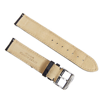 A Hadley Roma shiny black alligator strap with a square grain pattern. Lug Size: 18 mm, tapers to 16 mm at the buckle. Buckle not included.