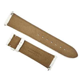 A Hadley Roma matte white alligator strap with a round grain pattern. Lug Size: 20 mm, tapers to 18 mm at the buckle. Buckle not included.