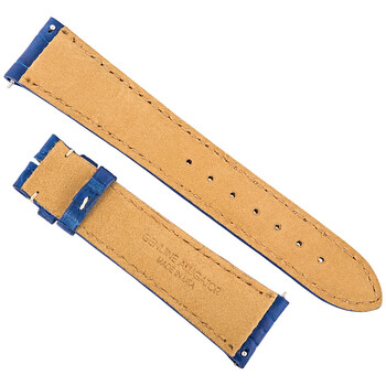 A Hadley Roma matte electric blue alligator strap with a square grain pattern and contrast stitching. Lug Size: 21 mm. Buckle not included. Made in the United States