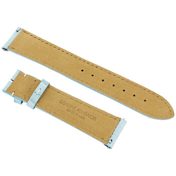 A Hadley Roma baby blue alligator strap with contrast stitching. Lug Size: 20 mm, tapers to 18 mm at the buckle. Buckle not included.