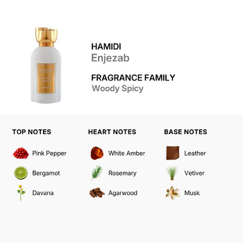 Crafted by the renowned design house Hamidi, known for its exquisite Middle Eastern fragrances, Enjezab is part of the prestigious Al Mukhmal collection. The unisex fragrance is perfect for those who appreciate the finer things in life and want to make a statement with their scent. Each bottle is meticulously designed to reflect the luxurious and timeless nature of the fragrance within.