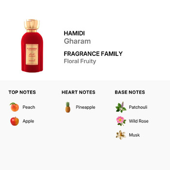 The Gharam fragrance opens with the delightful top notes of peach and apple, creating a fresh and inviting aroma. As the scent develops, the heart notes of pineapple add a tropical twist, making it both vibrant and alluring. The base notes of patchouli, wild rose, and musk provide a warm, earthy finish that lingers on the skin, leaving a lasting impression.