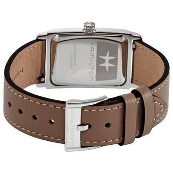 Stainless steel case with a brown leather strap. Fixed stainless steel bezel. Silver dial with silver-tone hands and alternating Roman numeral and index hour markers. Dial Type: Analog. Small seconds sub-dial. ETA caliber 980.163 quartz movement. Scratch resistant mineral crystal. Pull / push crown. Solid case back. Rectangle case shape. Case dimensions: 23.4 mm x 32 mm. Case thickness: 7 mm. Tang clasp. Water resistant at 30 meters / 100 feet. Functions: hour, minute, small second. American Classic Ardmore Series. Casual watch style. Hamilton American Classic Ardmore Ladies Watch H11421514.