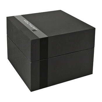 Stainless steel case with a black leather strap. Fixed stainless steel bezel. Silver dial with black hands and index hour markers. Dial Type: Analog. Date display above the 6 o'clock position. ETA caliber 2892-A2 automatic movement, based upon ETA 2890, containing 21 Jewels, bitting at 28800 vph, and has a power reserve of approximately 42 hours. Scratch resistant sapphire crystal. Pull / push crown. Skeleton case back. Round case shape. Case size: 42 mm. Case thickness: 11 mm. Band width: 22 mm. Band length: 8 inches. Tang clasp. Water resistant at 50 meters / 165 feet. Functions: date, hour, minute. Casual watch style. Watch label: Swiss Made. Hamilton American Classic Intra-Matic Silver Dial Men's Watch H38755751.