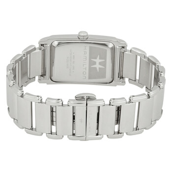 Stainless steel case with a stainless steel bracelet. Fixed stainless steel bezel. Silver dial with silver-tone hands and alternating index and Roman numeral hour markers. Dial Type: Analog. Small seconds sub-dial. Caliber 980.163 quartz movement. Scratch resistant sapphire crystal. Pull / push crown. Solid case back. Rectangle case shape. Case dimensions: 23.4 mm x 32 mm. Case thickness: 7 mm. Band width: 18 mm. Fold over clasp with a push button release. Water resistant at 30 meters / 100 feet. Functions: hour, minute, second. Dress watch style. Watch label: Swiss Made. Hamilton Ardmore Silver Dial Stainless Steel Men's Watch H11421114.