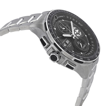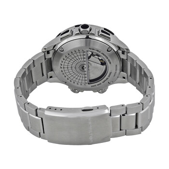 Stainless steel case with a stainless steel bracelet. Black dial with silver-tone hands and index hour markers. Minute markers. Cross wind markings around the outer rim. Dial Type: Analog. Day of the week and date display at the 9 o'clock position. Chronograph - three sub-dials displaying: 60 second, 30 minute and 12 hour. Automatic movement. Scratch resistant sapphire crystal. Pull / push crown. Skeleton case back. Case diameter: 45 mm. Round case shape. Band width: 22 mm. Fold over clasp. Water resistant at 100 meters / 330 feet. Casual watch style. Hamilton Aviation Khaki X-Wind Black Dial Stainless Steel Men's Watch H77766131.