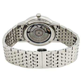Silver-tone stainless steel case and bracelet. Fixed silver-tone stainless steel bezel. Grey dial with rose gold-tone hands and index hour markers. Dial Type: Analog. Date display above the 6 o'clock position. ETA Caliber 2892-A2 Automatic movement, based upon ETA 2890, containing 21 Jewels, bitting at 28800 vph, and has a power reserve of approximately 42 hours. Scratch resistant sapphire crystal. Pull / push crown. Transparent case back. Round case shape, case size: 38 mm, case thickness: 9.8 mm. Band width: 20 mm. Fold over clasp with a push button release. Water resistant at 50 meters / 165 feet. Functions: date, hour, minute. Intra-matic Series. Casual watch style. Watch label: Swiss Made. Hamilton Intra-Matic Automatic Grey Dial Men's Watch H38455181.