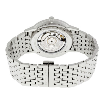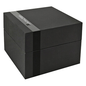 Stainless steel case with a stainless steel bracelet. Fixed stainless steel bezel. Silver dial with black hands and index hour markers. Dial Type: Analog. Date display at the 6 o'clock position. ETA caliber 2892-A2 automatic movement, based upon ETA 2890, containing 21 Jewels, bitting at 28800 vph, and has a power reserve of approximately 42 hours. Scratch resistant sapphire crystal. Pull / push crown. Skeleton case back. Round case shape. Case size: 42 mm. Case thickness: 10 mm. Band width: 22 mm. Band length: 8.5 inches. Fold over clasp with a push button release. Water resistant at 50 meters / 165 feet. Functions: date, hour, minute, second. Casual watch style. Watch label: Swiss Made. Hamilton Intra-Matic Ultra-slim Automatic Men's Watch H38755151.