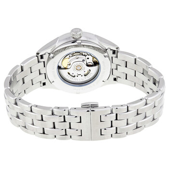 Stainless steel case with a stainless steel bracelet. Fixed stainless steel bezel. Black dial with silver-tone hands and Roman numeral hour markers. Minute markers around the outer rim. Dial Type: Analog. Luminescent hands and markers. Date display at the 6 o'clock position. Day of the week display centered on the 12 o' clock position. Automatic movement with an 80-hour power reserve. Scratch resistant sapphire crystal. Pull / push crown. Skeleton t case back. Case diameter: 42 mm. Case thickness: 12 mm. Round case shape. Band width: 22 mm. Fold over clasp with a safety release. Water resistant at 50 meters / 165 feet. Functions: date, day, hour, minute, second. Luxury watch style. Watch label: Swiss Made. Hamilton Jazzmaster Automatic Black Dial Stainless Steel Men's Watch H42565131.