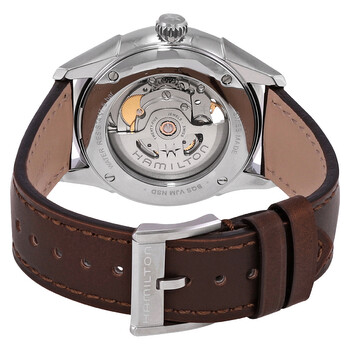 Silver-tone stainless steel case with a brown calf leather strap. Fixed silver-tone stainless steel bezel. Green open heart dial with silver-tone hands and index hour markers. Minute markers around the outer rim. Dial Type: Analog. Caliber H-10 automatic movement with an 80-hour power reserve. Scratch resistant sapphire crystal. Transparent see through case back. Round case shape, case size: 40 mm. Tang clasp. Water resistant at 50 meters / 165 feet. Functions: hour, minute, second. Jazzmaster Series. Dress watch style. Watch label: Swiss Made. Hamilton Jazzmaster Automatic Green Dial Men's Watch H32675560.