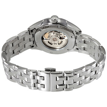 Stainless steel case with a stainless steel bracelet. Fixed stainless steel bezel. Silver (cut-out) dial with luminous blue hands and index hour markers. Arabic numerals appear at the 3, 6, 9 and 12 o'clock positions. Minute markers around the outer rim. Dial Type: Analog. Luminescent hands and markers. Hamilton calibre H-10 automatic movement, based upon ETA C07.111, containing 25 Jewels, bitting at 21600 vph, and has a power reserve of approximately 80 hours. Scratch resistant sapphire crystal. Pull / push crown. Transparent case back. Round case shape. Case size: 42 mm. Case thickness: 11.44 mm. Band width: 22 mm. Fold over clasp with a safety release. Water resistant at 50 meters / 165 feet. Functions: hour, minute, second. Jazzmaster Series. Dress watch style. Watch label: Swiss Made. Hamilton Jazzmaster Automatic Silver Dial Men's Watch H32705152.