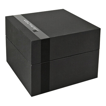 Stainless steel case with a brown croco-embossed leather strap with contrast trim. Fixed stainless steel bezel. White dial with gold-tone hands and index hour markers. An Arabic numeral marks the 12 o'clock position. Minute markers around the outer rim. Date display appears at the 3 o'clock position. Small seconds sub-dial above the 6 o'clock position. Automatic movement with a 42-hour power reserve. Scratch resistant mineral crystal. Steel crown. Skeleton case back. Case diameter: 43 mm. Case thickness: 8 mm. Tang clasp. Water resistant at 50 meters/ 165 feet. Functions: hours, minutes, small seconds, date. Hamilton Jazzmaster Automatic White Dial Men's Watch H38655515.