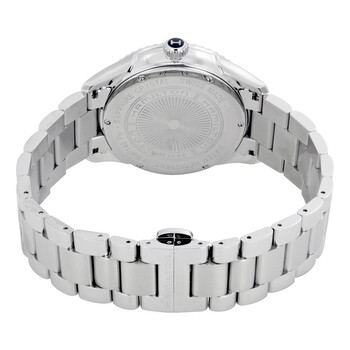 Silver-tone stainless steel case and bracelet. Silver-tone stainless steel bezel. Blue dial with luminous silver-tone hands and index hour markers. Minute markers around the outer rim. Dial Type: Analog. Luminescent hands and markers. Day of the week and date display at the 3 o'clock position. ETA Caliber 955.122 quartz movement. Scratch resistant sapphire crystal. Pull / push crown. Solid case back. Round case shape, case size: 42 mm, case thickness: 10 mm. Band width: 22 mm, band length: 7.5 inches. Deployment clasp. Water resistant at 100 meters / 330 feet. Functions: date, day, hour, minute, second. Jazzmaster Seaview Series. Casual watch style. Watch label: Swiss Made. Hamilton Jazzmaster Seaview Blue Dial Men's Watch H37551141.