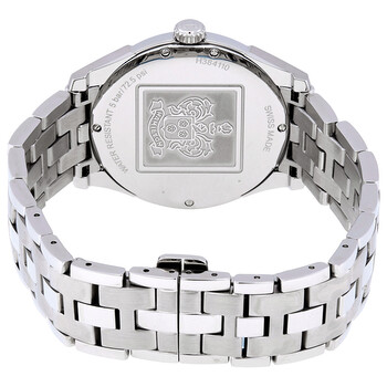 Stainless steel case with a stainless steel bracelet. Fixed stainless steel bezel. Blue dial with luminous silver-tone dauphine-style hands and Arabic numeral hour markers. Arabic numeral minute markers (at 5 minute intervals). Minute markers around the outer rim. Dial Type: Analog. Luminescent hands and markers. Date display at the o'clock position. Small seconds sub-dial. Quartz movement. Scratch resistant sapphire crystal. Pull / push crown. Solid case back. Round case shape. Case size: 40 mm. Case thickness: 7.35 mm. Band width: 20 mm. Fold over clasp with a push button release. Water resistant at 50 meters / 165 feet. Functions: hour, minute, second. Jazzmaster Thinline Series. Casual watch style. Watch label: Swiss Made. Hamilton Jazzmaster Thinline Quartz Blue Dial Men's Watch H38411140.