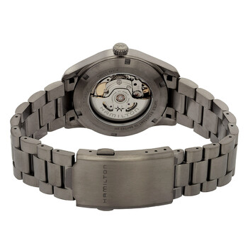 Silver-tone titanium case and bracelet. Fixed silver-tone titanium bezel. Blue dial with black hands and Arabic numeral hour markers. Minute markers around the outer rim. Dial Type: Analog. Luminescent hands and markers. Hamilton Calibre H-10 Automatic movement, based upon ETA C07.111, containing 25 Jewels, bitting at 21600 vph, and has a power reserve of approximately 80 hours. Scratch resistant sapphire crystal. Transparent case back. Round case shape, case size: 38 mm, case thickness: 11.68 mm. Band width: 20 mm. Fold over clasp with a safety release. Water resistant at 100 meters / 330 feet. Functions: hour, minute, second. Khaki Field Series. Sport watch style. Watch label: Swiss Made. Hamilton Khaki Field Automatic Blue Dial Men's Watch H70205140.