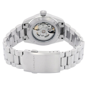 Silver-tone stainless steel case and bracelet. Fixed silver-tone stainless steel bezel. Black dial with silver-tone hands and Arabic numeral hour markers. Minute markers around the outer rim. Dial Type: Analog. Hamilton Calibre H-10 Automatic movement, based upon ETA C07.111, containing 25 Jewels, bitting at 21600 vph, and has a power reserve of approximately 80 hours. Scratch resistant sapphire crystal. Screw down crown. Transparent case back. Round case shape, case size: 37 mm, case thickness: 11.45 mm. Band width: 20 mm. Fold over clasp with a safety release. Water resistant at 100 meters / 330 feet. Functions: hour, minute, second. Khaki Field Series. Sport watch style. Watch label: Swiss Made. Hamilton Khaki Field Expedition Automatic Black Dial Men's Watch H70225130.