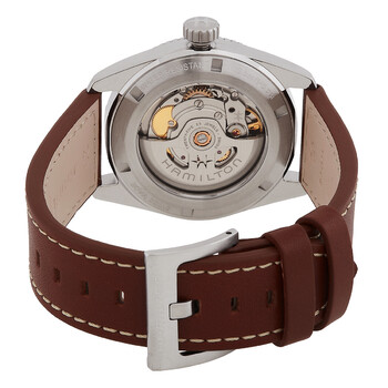Silver-tone stainless steel case with a brown leather strap. Fixed silver-tone stainless steel bezel. Blue dial with silver-tone hands and Arabic numeral hour markers. Minute markers around the outer rim. Dial Type: Analog. Luminescent hands and markers. Hamilton Calibre H-10 Automatic movement, based upon ETA C07.111, containing 25 Jewels, bitting at 21600 vph, and has a power reserve of approximately 80 hours. Scratch resistant sapphire crystal. Screw down crown. Transparent case back. Round case shape, case size: 37 mm, case thickness: 11.45 mm. Band width: 20 mm. Buckle clasp. Water resistant at 100 meters / 330 feet. Functions: hour, minute, second. Khaki Field Series. Sport watch style. Watch label: Swiss Made. Hamilton Khaki Field Expedition Automatic Blue Dial Men's Watch H70225540.
