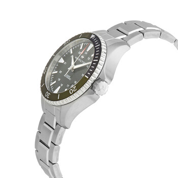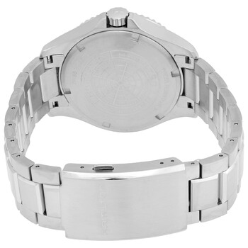 Stainless steel case with a stainless steel bracelet. Uni-directional rotating stainless steel bezel with a green and black ring. Green dial with luminous silver-tone hands and index hour markers. 24 hour markers. Minute markers around the outer rim. Dial Type: Analog. Luminescent hands and markers. Date display between the 4 and 5 o'clock positions. Hamilton calibre H-10 automatic movement, based upon ETA C07.111, containing 25 Jewels, bitting at 21600 vph, and has a power reserve of approximately 80 hours. Scratch resistant sapphire crystal. Screw down crown. Transparent case back. Round case shape. Case size: 40 mm. Case thickness: 12.95 mm. Band width: 20 mm. Fold over clasp. Water resistant at 100 meters / 330 feet. Functions: date, hour, minute, second. Khaki Navy Series. Casual watch style. Watch label: Swiss Made. Hamilton Khaki Navy Automatic Green Dial Men's Watch H82375161.