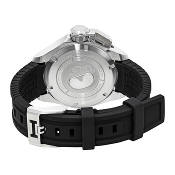 Stainless steel case with a black rubber strap. Uni-directional rotating stainless steel bezel with a red aluminium top ring. Black dial with luminous silver-tone arrow-shaped hands and index hour markers. An Arabic numeral appears at the 12 o'clock positions. Minute markers around the outer rim. Dial Type: Analog. Luminescent hands and markers. Date display between the 4 and 5 o'clock positions. Hamilton calibre H-10 automatic movement, based upon ETA C07.111, containing 25 Jewels, bitting at 21600 vph, and has a power reserve of approximately 80 hours. Scratch resistant sapphire crystal. Screw down crown. Solid case back. Round case shape. Case size: 42 mm. Case thickness: 12.5 mm. Band width: 20 mm. Tang clasp. Water resistant at 300 meters / 1000 feet. Functions: date, hour, minute, second. Dive watch style. Watch label: Swiss Made. Hamilton Khaki Navy Frogman Automatic Black Dial Men's Watch H77725335.