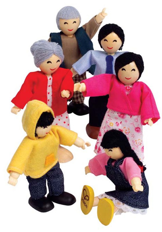 Hape, ხის თოჯინები, ბედნიერი ოჯახი საუკეთესო სათამაშოა როლური თამაშებისთვის. ბედნიერი ოჯახის წევრები არიან დედა, მამა, ბებია, ბაბუა, და და ძმა. ყველა თოჯინა დამზადებულია უმაღლესი ხარისხის ხისგან და აქვთ დახვეწილი დეტალებით გაფორმებული ტანსაცმელი.